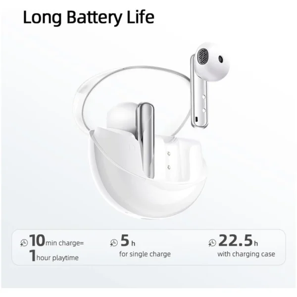 • قابلیتها: نویز کنسلینگ میکروفون (ENC)، حالت گیمینگ با تأخیر کم، نشانگر LED، پشتیبانی از اپلیکیشن اختصاصی QCY