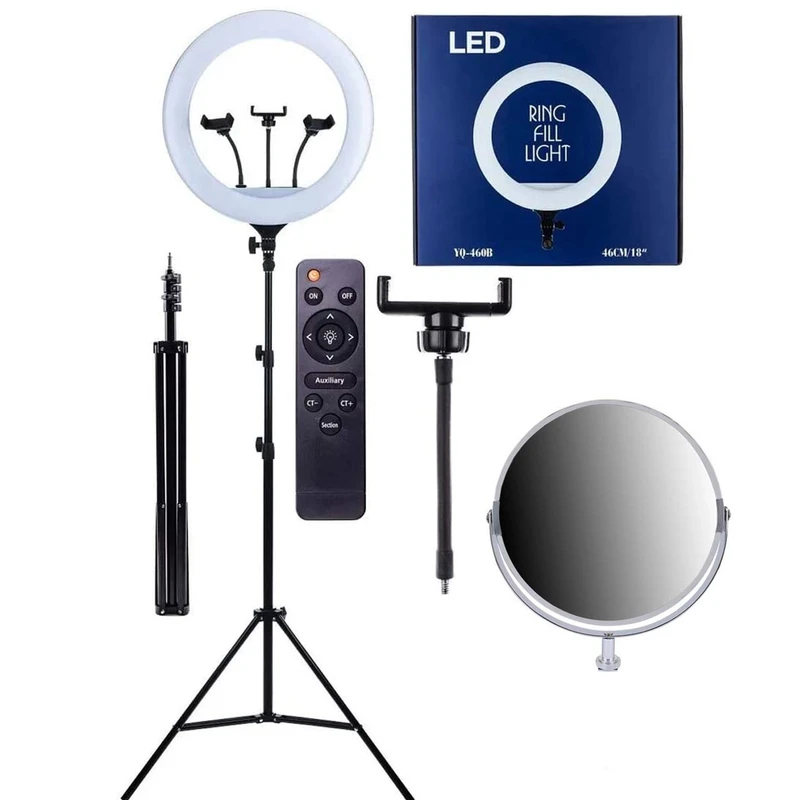 رینگ لایت زئوس مدل YQ460B با قطر بزرگ ۱۸ اینچی، نور یکنواخت و گستردهای تولید میکند که برای عکاسی پرتره، ضبط ویدئوهای آموزشی، تولید محتوای اینستاگرام و یوتیوب، و حتی آرایشگری بسیار کاربردی است. توان بالای ۶۵–۷۰ وات و بیش از ۴۶۰ LED باعث میشود شدت نور کافی برای محیطهای کمنور فراهم شود.